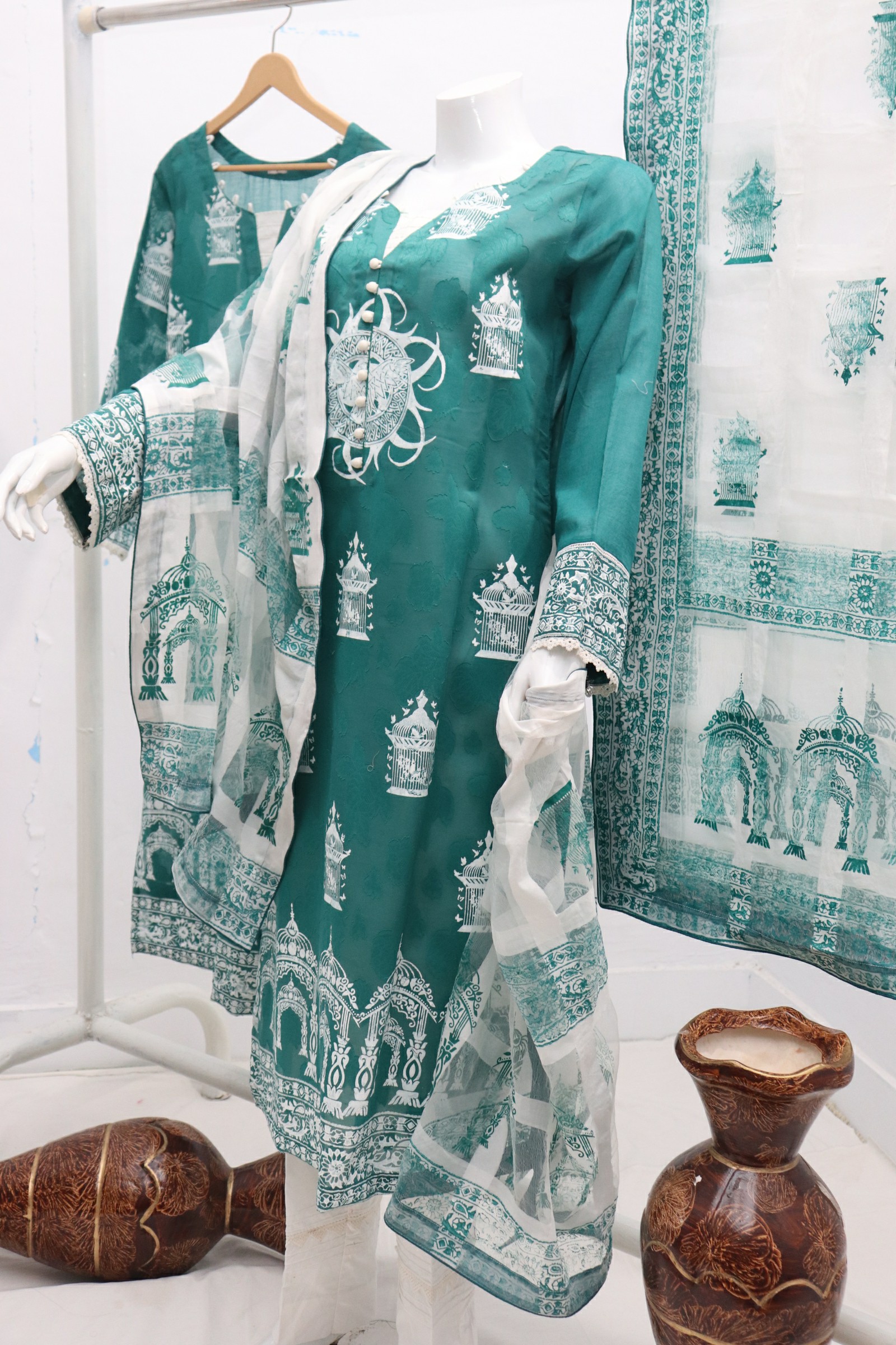 3 Piece Table Print Shirt & Dupatta and Trouser