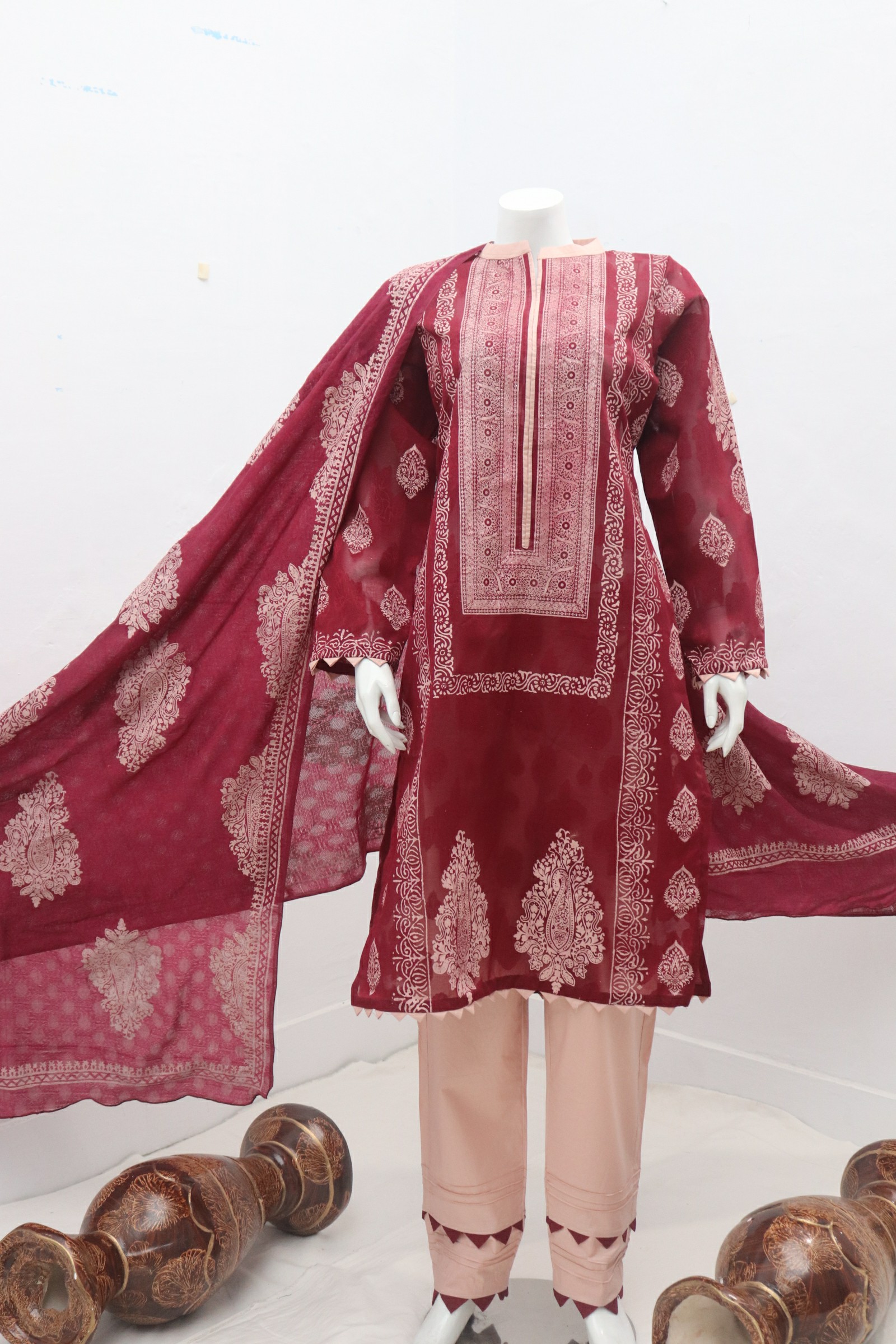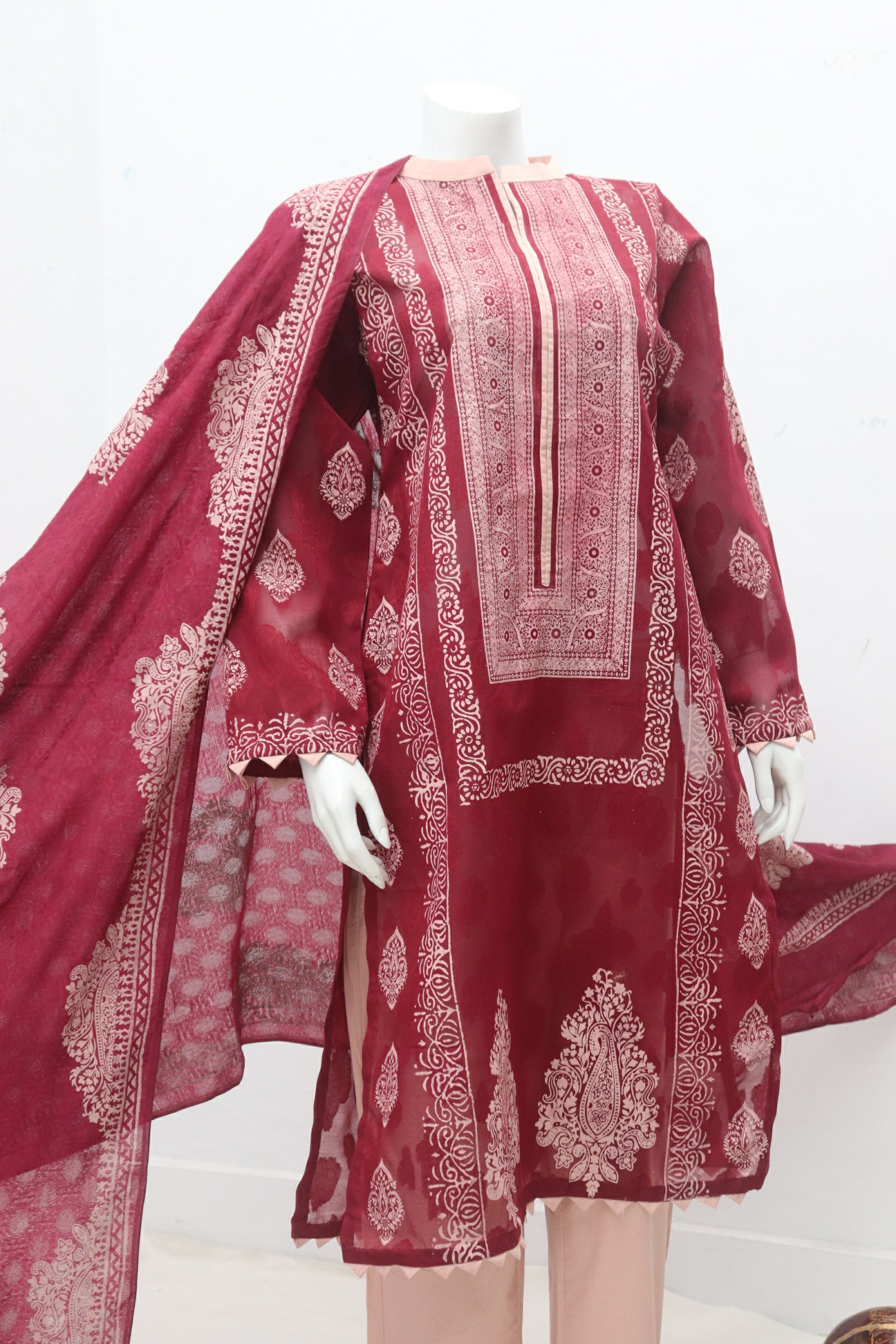 3 Piece Table Print Cotton Net Shirt & Dupatta and Trouser