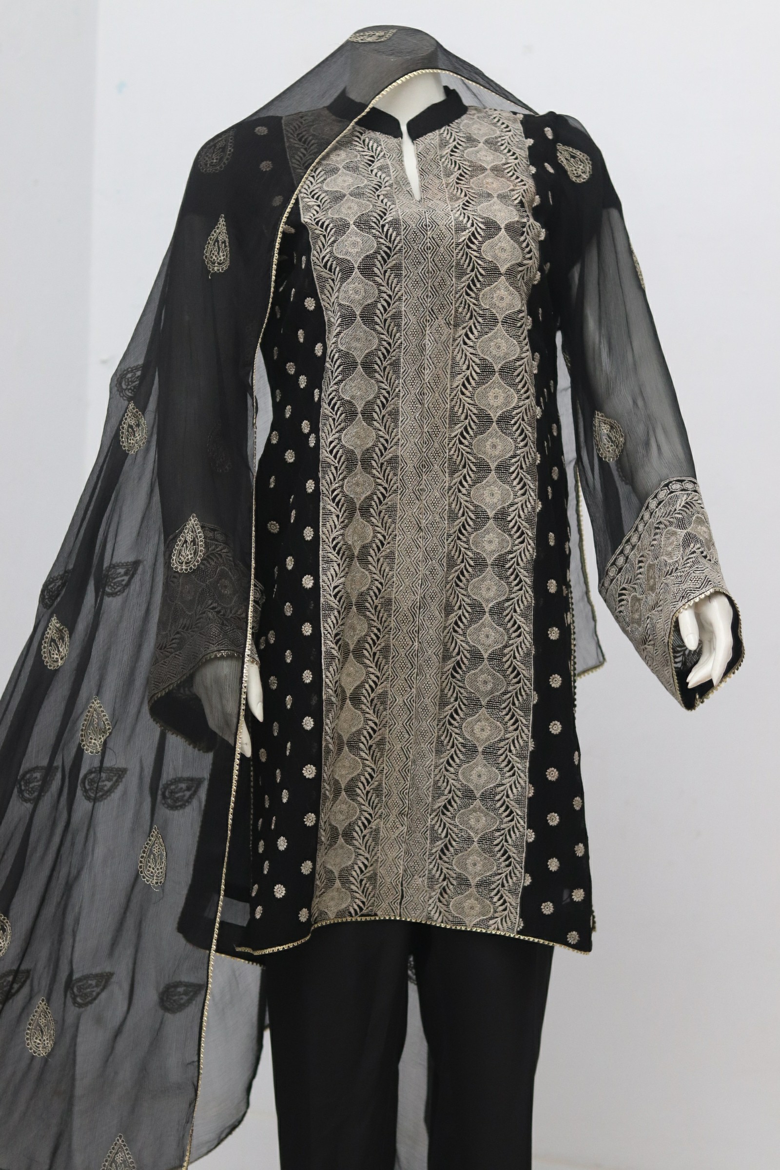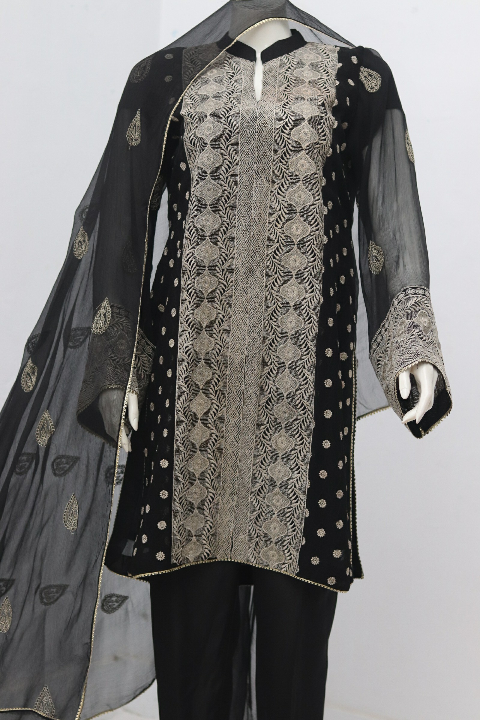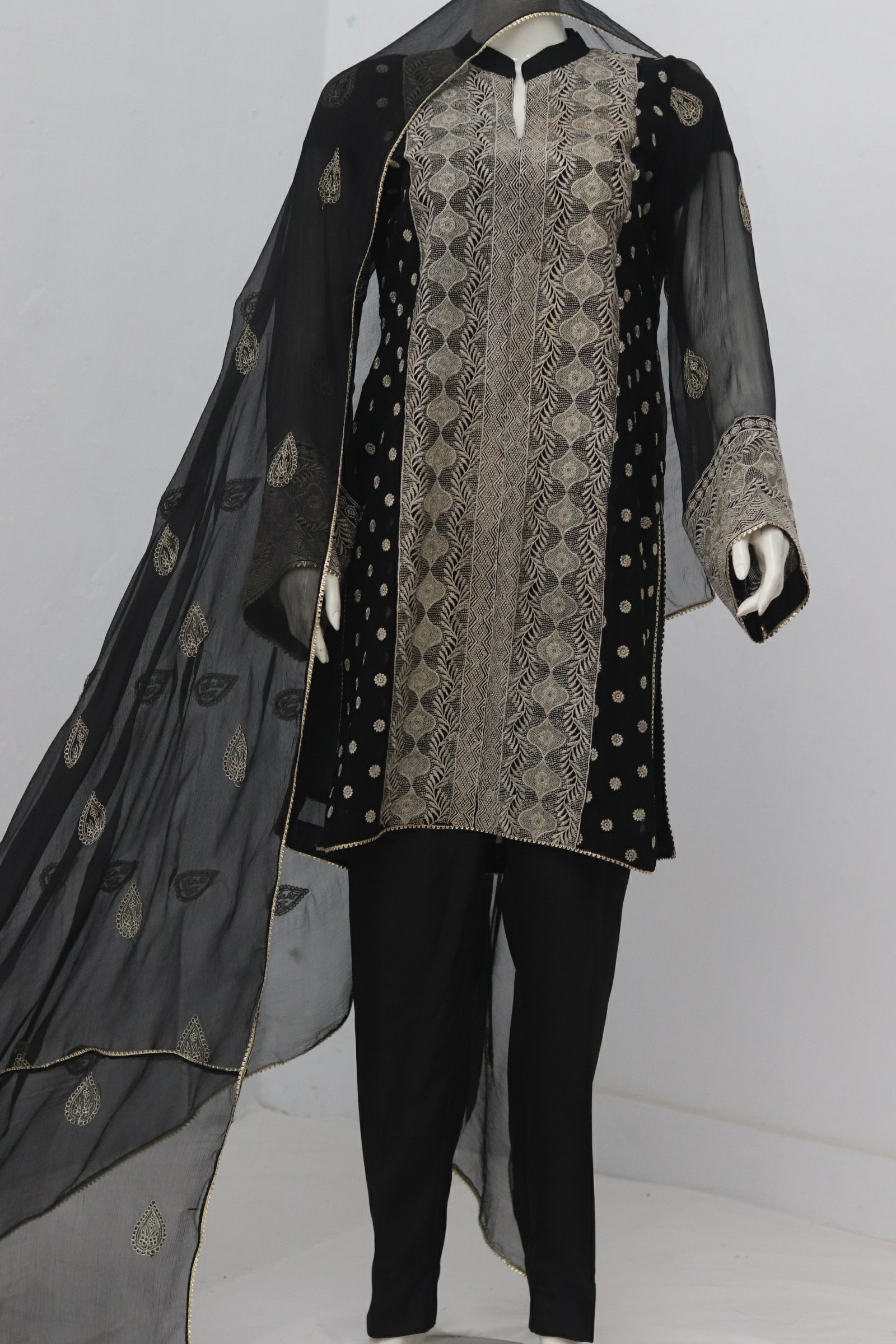 - 3 Piece indian chiffon fabric Emboridery work Shirt & Dupatta and Trouser