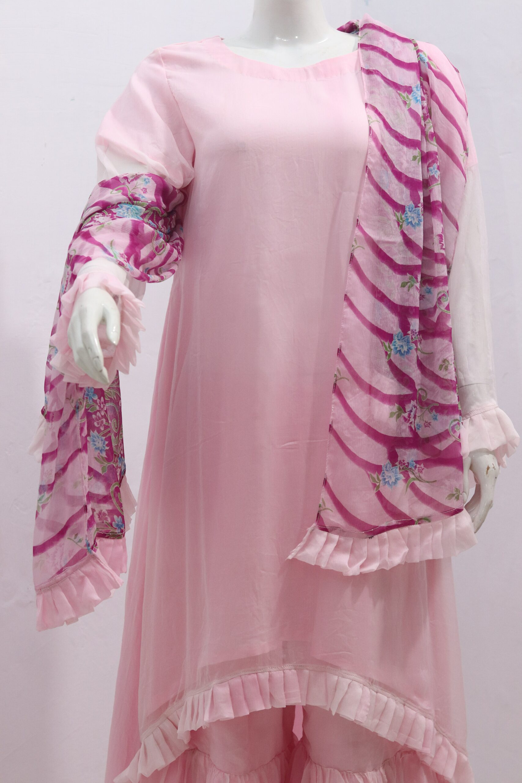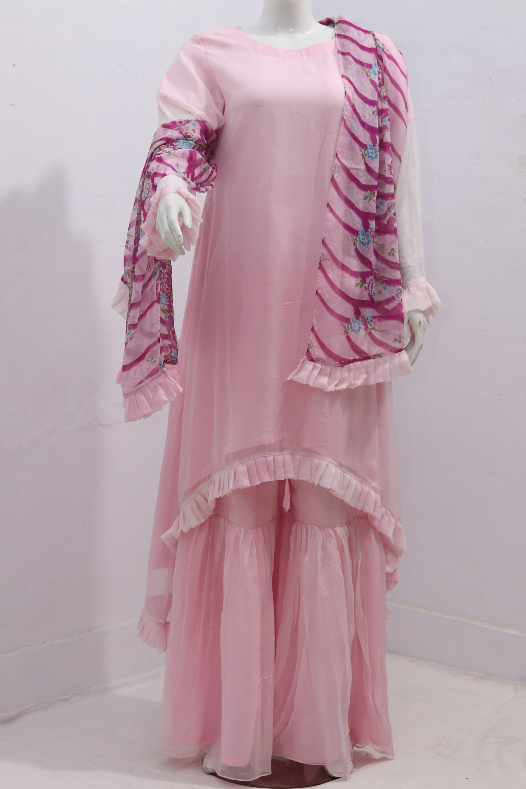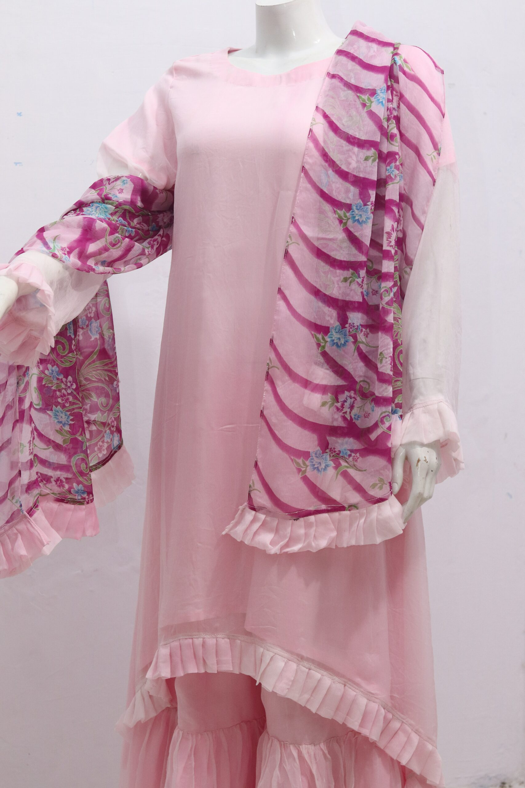 Ready To Wear Chiffon Fabric Self Print Design on Dupatta with Frills on Pallu Sides