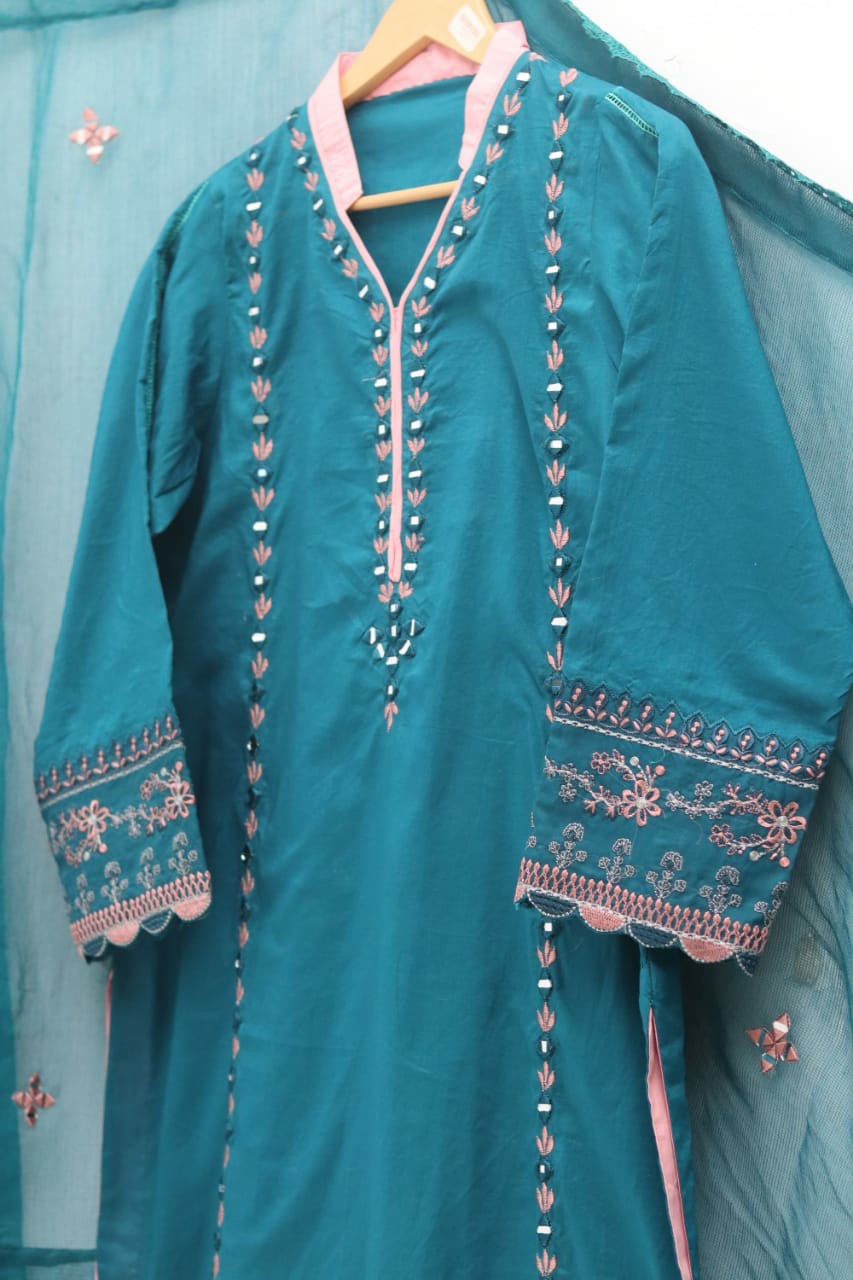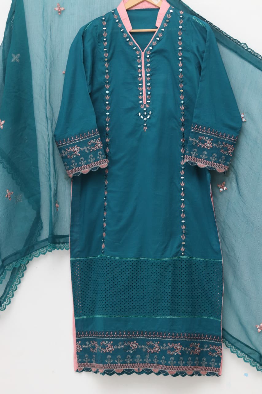 - 2 Piece Embroidrey Mrrior Shirt & Dupatta